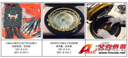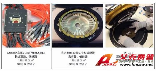 在多針全自動(dòng)生產(chǎn)測(cè)試應(yīng)用中進(jìn)行可靠的高壓測(cè)量帶來(lái)了許多 挑戰(zhàn),包括環(huán)境、器件布線和探頭設(shè)計(jì)。吉時(shí)利為探測(cè)最高 3k V 電壓、同時(shí)保持低電平測(cè)量性能提供了兩種優(yōu)質(zhì)解決方案: 吉時(shí)利9140 和Celadon 45E。此外,為簡(jiǎn)化探頭卡安裝和拆卸, 我們作為出廠安裝選項(xiàng)提供了inTEST 頂部裝載探頭卡接口。