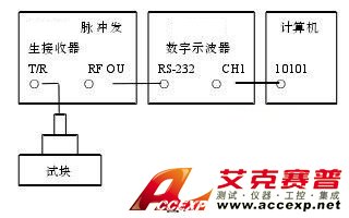 測試裝置由ACCEXP-590脈沖發生接收器、泰克數字示波器、超聲波探傷標準試塊、對比試塊和頻率自動分析軟件等組成。