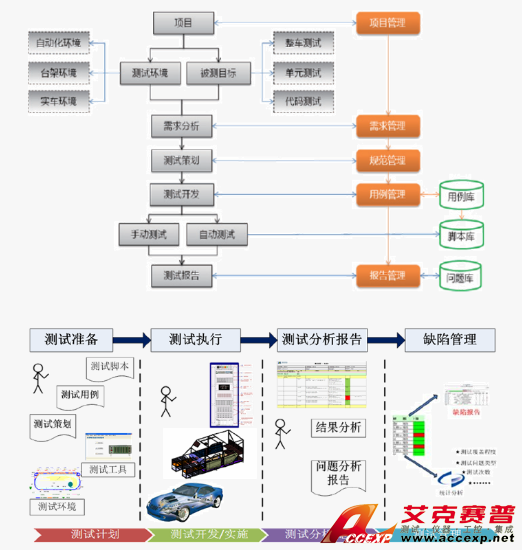 提供定制化的測試管理平臺,規范整車測試所有活動,包括過程管理、進度管理、風險管理、技術規范及測試用例管理、測試報告管理、缺陷管理等