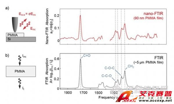 圖4 Nano-FTIR所獲得的光譜圖與傳統紅外光譜圖的比較