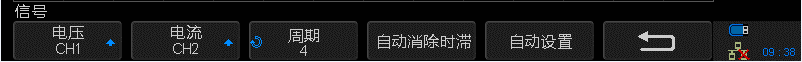 7、按下“自動(dòng)設(shè)置”軟鍵,示波器將會(huì)自動(dòng)設(shè)置電壓和電流通道的垂直電壓檔位、垂直偏移和水平電壓等。