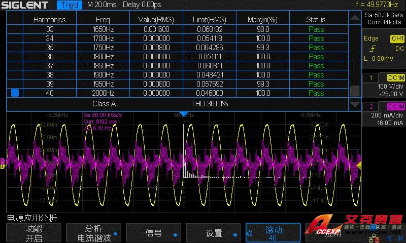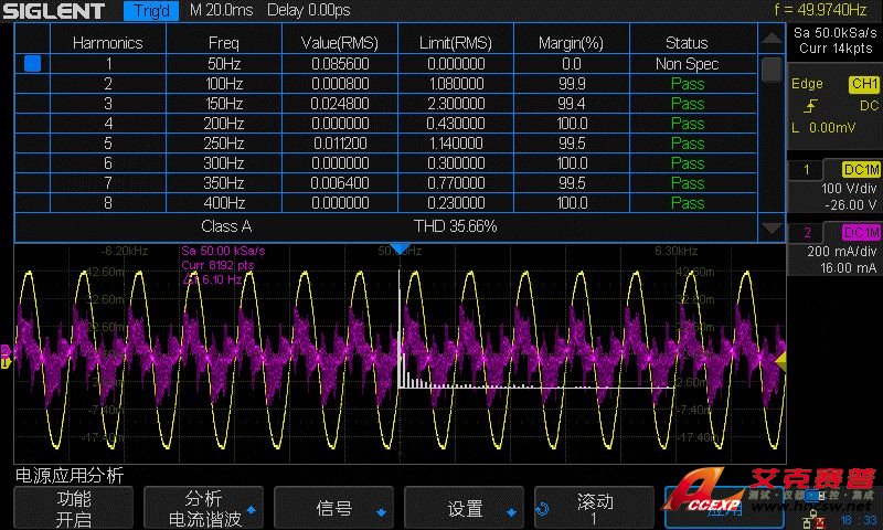 我們通過(guò)測(cè)試功率和分析諧波來(lái)展示SDS2000X的電源分析功能。