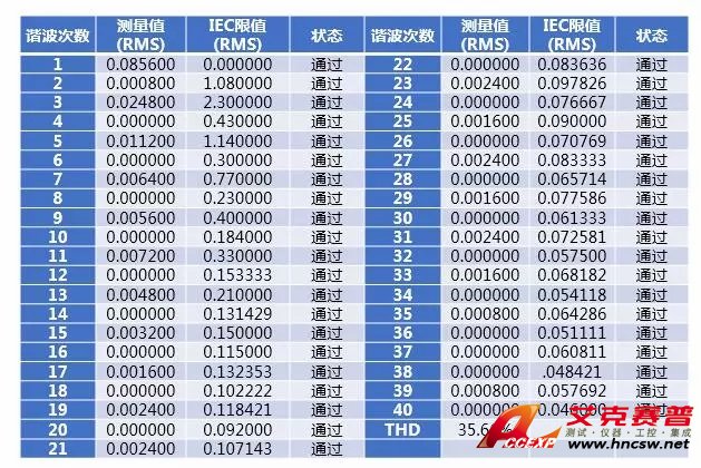 從表中可以了解到所測(cè)的電流諧波均滿(mǎn)足IEC61000-3-2標(biāo)準(zhǔn)限值。