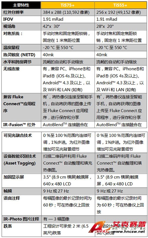 相比原有型號(FlukeTiS75和TiS55),新產品的像素提高了44%(TiS75+:384x288像素;TiS55+:256x192像素),這將為用戶提供更加清晰和準確的測量結果。同時熱靈敏度由0.08℃升級至0.04℃,能夠檢測到更微小的溫度變化。