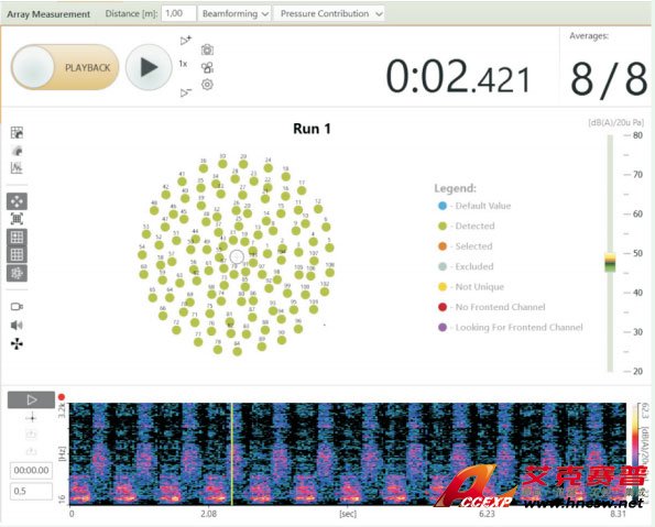 但是,這項(xiàng)工作還尚未完成。測(cè)試的結(jié)果必須報(bào)告給同事,或管理層,更改建議必須再次實(shí)施并測(cè)試。聲學(xué)相機(jī)在這里也可以提供幫助。它不僅可以提供噪聲云圖,還可以提供頻譜圖、聲功率圖和視頻,以供記錄和比較之用。錄制的測(cè)試也可以以較慢速度重放,以調(diào)查短期事件。這些功能顯示出了聲學(xué)相機(jī)在故障排除,異響檢測(cè)和客戶投訴評(píng)估方面的價(jià)值。
