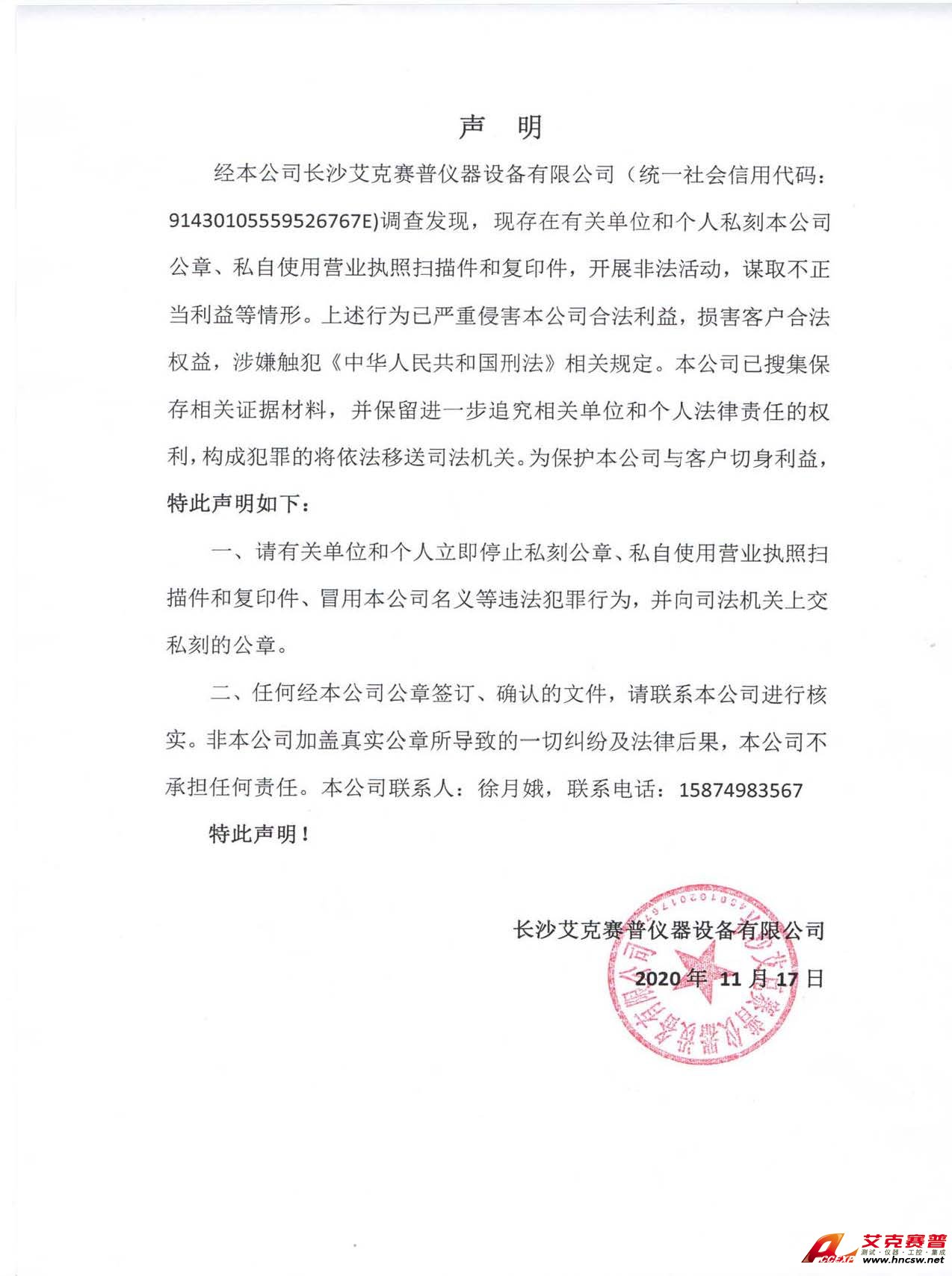 有關單位和個人私刻我司公章的公司聲明