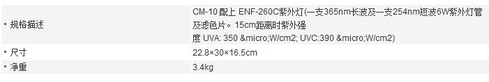 除了沒有配備紫外燈外, CM-10 和CM-26/24紫外觀察箱完全一樣。其凈重僅5磅(2.3kg)。