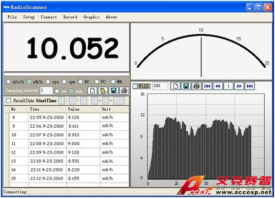 放射性污染物可能會污染您的食物或水。用ACCEXP-FD01B/C增強型核輻射儀,您不必每天檢查輻射水平,其內置的存儲器可自動記錄最近一段時間內的輻射值,如果輻射強度超過報警閾值,將會立刻發(fā)出報警提示,同時您還可以通過計算機配套軟件下載測量數(shù)據(jù),以便于您觀察和分析。