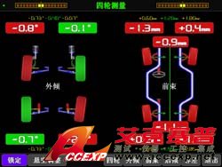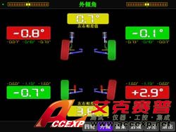 | 單獨(dú)的測(cè)量系統(tǒng):(外傾角)功能畫面設(shè)計(jì)了,以車輪傾斜變化和顏色的區(qū)分不復(fù)雜,清晰及容易解說(shuō) | 方向盤自動(dòng)計(jì)算調(diào)整系統(tǒng) |