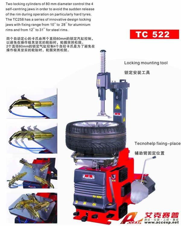 M&B TC-522拆胎機(jī)特殊需求的原因在于輪胎和輪輞的不斷變化(EMT, RFT,CRS,DSST,PAX等),要求M&B TC-522拆胎機(jī)專(zhuān)門(mén)研究。在這些模式中,M&B TC-522拆胎機(jī)在解決問(wèn)題和建立質(zhì)量標(biāo)準(zhǔn)方面起著重要作用。M&B TC-522拆胎機(jī)是新一代的拆輪胎設(shè)備為市場(chǎng)上的所有輪胎提供最好的安裝和拆卸功能。