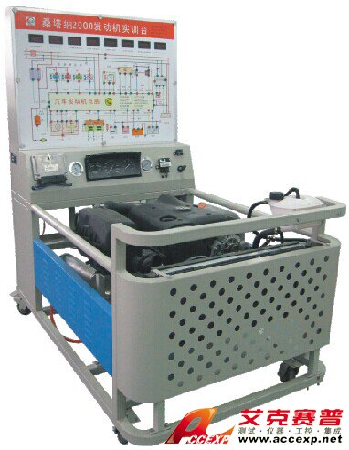 桑塔納2000GSI AJR發(fā)動機總成、原車發(fā)動機控制電腦、組合儀表、防盜電腦、發(fā)動機起動運行所有相關的原車附件、故障設置和排除系統(tǒng)、原車電路原理圖板及檢測端子、60AH大容量蓄電池、大容量不銹鋼油箱、發(fā)動機加速機構、控制面板柜、可移動臺架、臺架