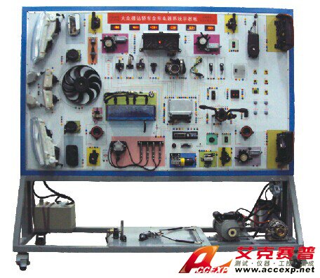 在整車電器基礎(chǔ)上,配備各相關(guān)輔助控制裝置,可如原車一樣實際演示起動、充電、燈光、儀表、雨刮、中控門鎖、車身防盜、電動窗、音響系統(tǒng)等全套整車電器設(shè)備的工作原理和過程;