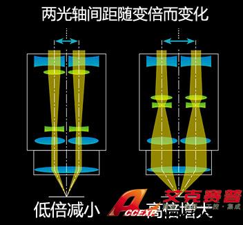 這是體式顯微鏡設(shè)計(jì)中的突破,完美變焦系統(tǒng)會(huì)在變倍過(guò)程中動(dòng)態(tài)改變兩光軸間的距離。光軸間距離的變化可使每一倍率得到最大的進(jìn)光量,使兩個(gè)光路獲得無(wú)妥協(xié)的高變倍比與高分辨率,同時(shí)還可修正整個(gè)變倍范圍中的光學(xué)誤差。此外這一突破性的光學(xué)設(shè)計(jì)還可將以上所有的特性整合在緊湊的機(jī)身中,讓體式顯微鏡同時(shí)滿(mǎn)足人體工學(xué)設(shè)計(jì)的需要。