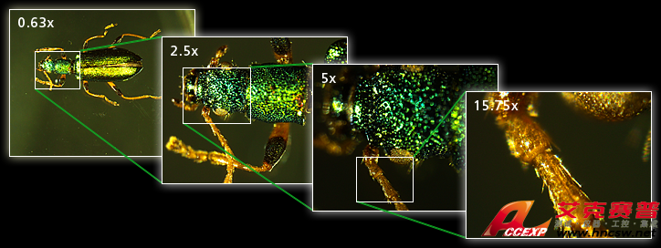 0.5X物鏡放大6倍觀察,切換到2X物鏡后系統(tǒng)自動(dòng)變倍到1.5倍而保持3倍的綜合倍率