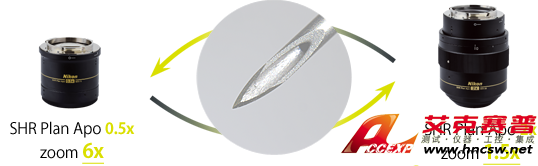 尼康新開(kāi)發(fā)的SHR Plan Apo系列物鏡,提供1100LP/mm 的高分辨率。全新SHR Plan Apo系列物鏡同時(shí)具備有極其出色的畫(huà)質(zhì)與逼真的色彩。