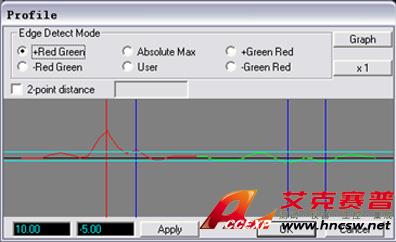 在一個(gè)采樣域內(nèi),可能存在有多個(gè)邊界信號(hào),NEXIV 允許客戶根據(jù)自身的需要來(lái)選擇所需檢出的邊界; 客戶可以在灰度變化率顯示窗內(nèi),指定邊界檢出的條件; 當(dāng)工件圖象的對(duì)比度較低時(shí),客戶還可以通過(guò)調(diào)整邊界變化率檢出的閾值,來(lái)提高邊界的檢出性能。