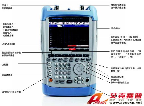 簡介:R&S FSH4是一款頻譜分析儀,依據不同的型號、選件可以實現不同的功能,例如功率計、電纜和天饋線測試儀、雙端口矢量網絡分析儀。R&S FSH4手持頻譜分析儀具有可折疊的支架,可作為桌面式分析儀使用,應用于實驗室或服
