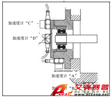 加速度計的安裝方式使得所需測量方向與主軸靈敏度吻合。加速度計對于橫向方向中的振動有點敏感,但這通常可被忽略,因為最大橫向靈敏度通常僅有主軸靈敏度的百分之幾。進行振動測量測試的原因通常決定加速度計的位置。在下圖中,其目的是監(jiān)控軸和軸承的條件。在該實例中,應對加速度計進行定位,以保持軸承振動的直接路徑。因此,加速度計 “A” 將檢測主要來自軸承而不是機器其他部分的振動信號,而加速度計 “B” 將接收通過關節(jié)的傳輸改變的軸承振動, 混合來自機器其他部分的信號。同樣,加速度計“C”被安裝在比加速度計“D”更加直接的路徑上。