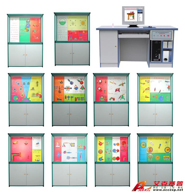 TSI 10-78型多媒體智能控制《機械原理》陳列柜是根據(jù)大、中專院校、技校、職業(yè)學校的機械原理教學大綱而設計的一套電化多媒體教學設備。陳列柜共分十個柜和一個電腦控制臺,進行多媒體聲控同步解說演示。由PC機電腦控制順序或任選運行每個柜模型動作,同時電腦播放圖像或三維動畫同步模型動作。