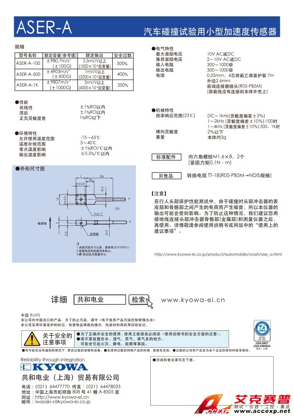 簡(jiǎn)介:KYOWA ASER-A 汽車(chē)碰撞試驗(yàn)用小型加速度傳感器
