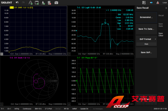 除開(kāi)外觀設(shè)計(jì),其先進(jìn)的用戶界面,配合上12.1英寸超大觸摸屏與外接的鼠標(biāo)和鍵盤(pán),讓工程師能更快的添加或刪除窗口,通道和跡線。SNA5032A支持在多個(gè)窗口下,添加多條跡線進(jìn)行S參數(shù)測(cè)量。并且測(cè)量結(jié)果,可以多種數(shù)據(jù)格式顯示,如 Log Mag,Lin Mag,Phase,Delay,Smith,SWR,Polar等,可以方便快捷地分析被測(cè)物的傳輸系數(shù),反射系數(shù),駐波比,阻抗匹配,相位,延時(shí)等參數(shù)。