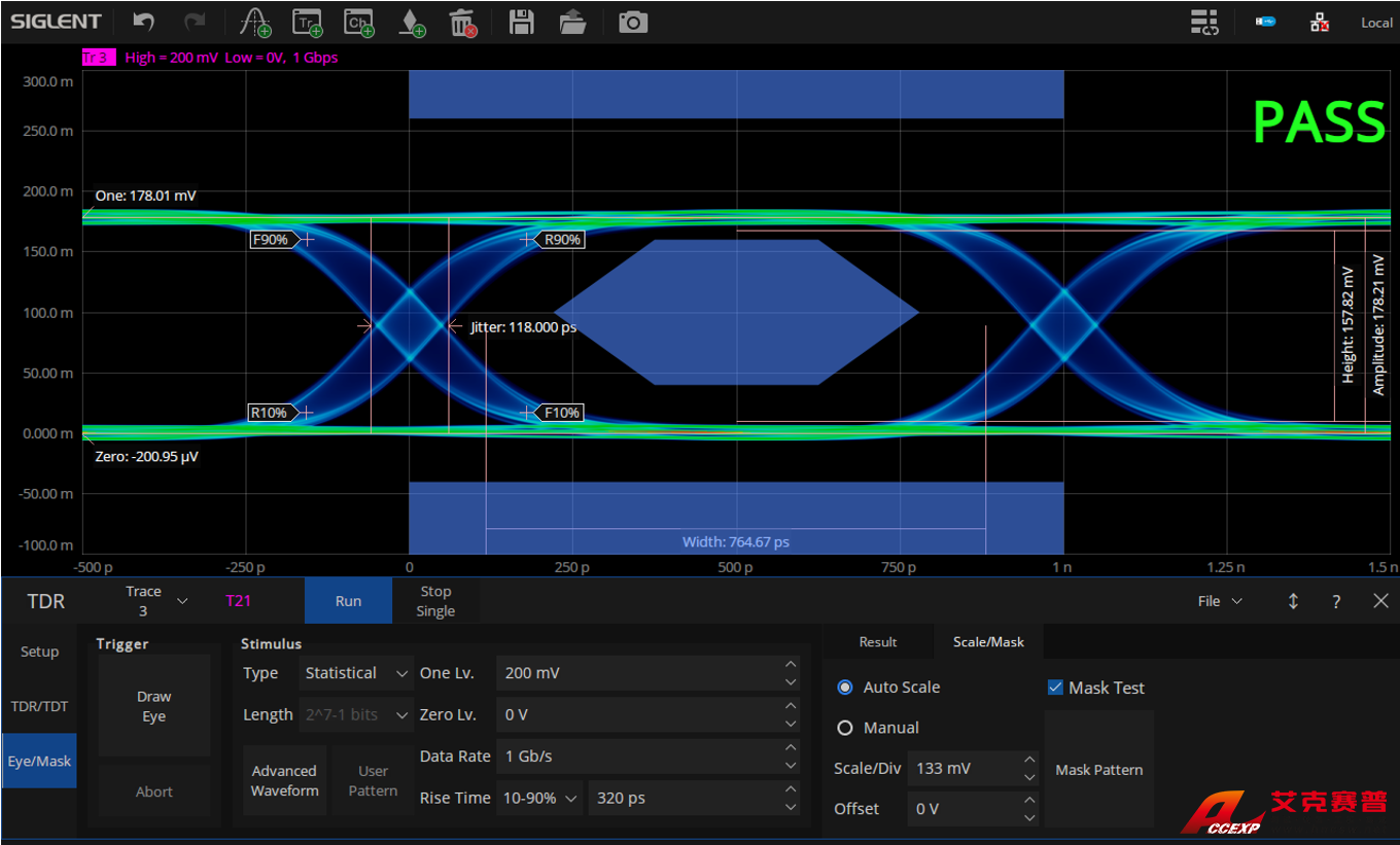 另外,SNA5032A還支持TDR時(shí)域反射計(jì)測(cè)量功能,可在時(shí)域?qū)鬏斁€的特征阻抗,時(shí)延等參數(shù)進(jìn)行分析。