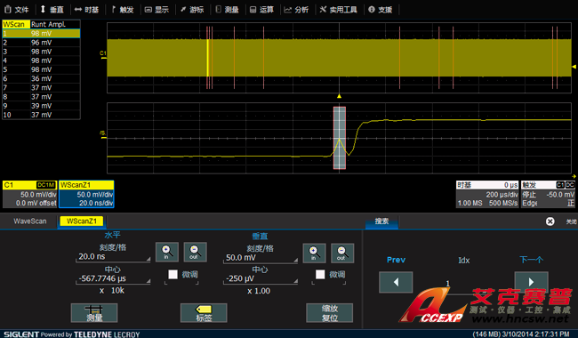 | MSO | 通道數(shù) 16,采樣率 500 MSa/s,存儲深度 10 Mpts |