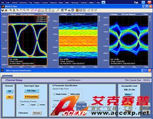 SDLA - 串行數(shù)據(jù)鏈路分析(選項SLE 和選項SLA)-能夠仿真串 行數(shù)據(jù)通道,反嵌夾具或其它網(wǎng)絡(luò),增加或去掉發(fā)射機均衡(去加 重/ 預加重)。選項SLA 在波形處理中增加了FFE 和DFE 均衡和自 適應(yīng)均衡器訓練功能。DPOJET 可以對得到的波形進行高級測量 和抖動分析。