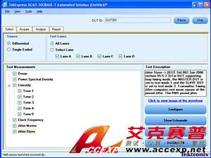 TekExpress SATA自動一致性測試軟件-完整地為發(fā)送端和接收端提供支持SATA Gen1 和SATA Gen2 定義的測試集。使用TekExpress 軟件簡單高效地 自動執(zhí)行所有測試項,可節(jié)約您大約70% 的一致性測試時間。同 時,該軟件包含了自動識別測試設(shè)備,準確的DUT/Host 控制和一 鍵化測試功能。