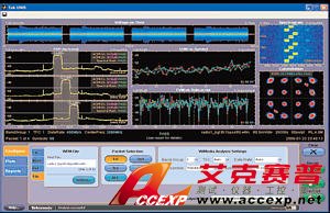當需要對射頻或者基帶信號進行矢量信號分析時,可選的SignalVu應(yīng)用程序提供了時間相關(guān)的多域(頻率、時間、相位、調(diào)制)分析能力。SignalVu測量和示波器的時域采集/觸發(fā)完全相互關(guān)聯(lián)。時域事件,如給射頻子系統(tǒng)發(fā)的命令,可以被用做觸發(fā)事件,此時子系統(tǒng)中射頻信號可以在頻域顯示中看到。