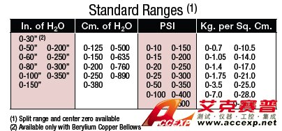 0 to 75 PSID thru 0 to 500 PSID range .06 Cu. In.