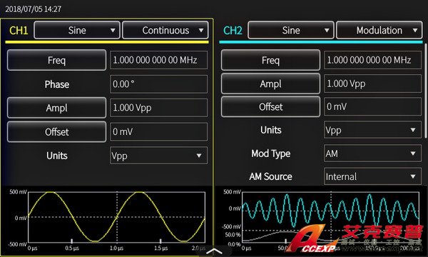 在基本模式下,AFG31000 生成傳統(tǒng)函數(shù)和任意波形。觸摸屏和前面板控制功能可以簡便地進行設(shè)置。