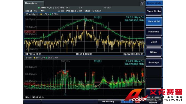 R&S ESRP EMI 測試接收機專用于開發(fā)階段的診斷測量和預一致性測量,以便產(chǎn)品準備好接受最終的認證測試。在 10 Hz 至 7 GHz 的頻率范圍內(nèi),接收機使用傳統(tǒng)的步進式頻率掃描或基于 FFT 的時域掃描(可大幅加快測量)測量電磁干擾。R&S ESRP 也可作為功能全面、強大的信號與頻譜分析儀,并適用于實驗室應用。R&S ESRP 配備觸摸屏和直觀的菜單結(jié)構(gòu),易于在任何模式下進行操作。