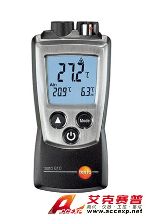 德國德圖testo 810可同時通過紅外方式測量物體的表面溫度及測量場合的環境溫度,并同時顯示。